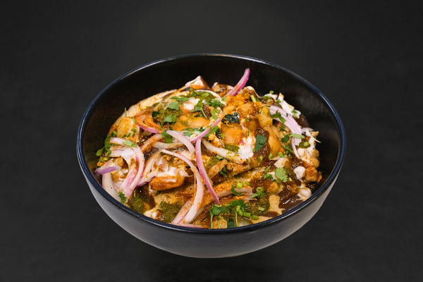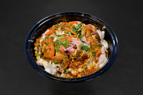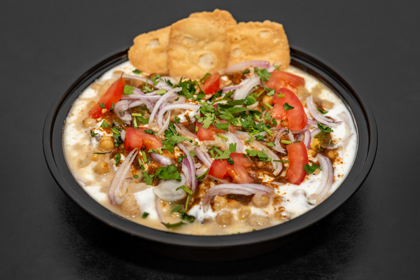 (Serves 2-3) Channa Chaat is a lively, tangy snack made from chickpeas mixed with onions, tomatoes, soft lentil dumplings immersed in a creamy yogurt sauce and tossed with crispy fried dough (papdi). Seasoned with a zesty blend of spices, this popular street food is often drizzled with tamarind chutney and garnished with fresh cilantro, offering a delicious combination of flavours and textures.