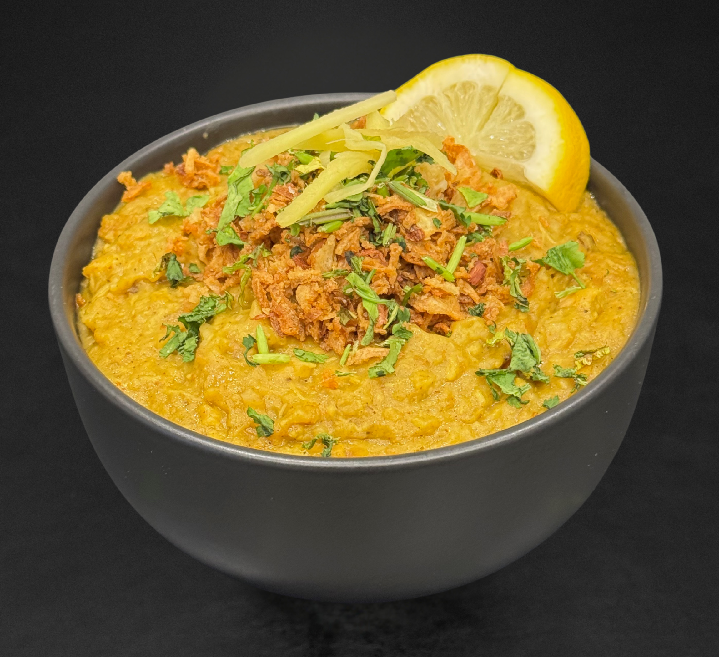 Classic Chicken Haleem — thick, comforting, and slow-cooked with lentils, wheat, and desi spices. Add lemon + ginger + fried onions and you're set. 🍲✨