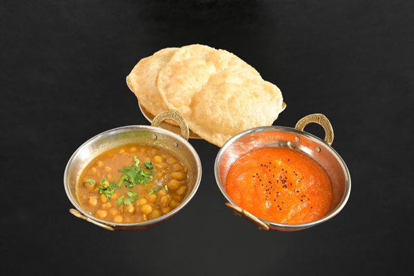 Indulge in our traditional breakfast feast featuring 2 soft puris, sweet halwa, and savoury sides of Channay (spiced chickpeas) and Aloo Tarkari (potato curry). 🥙🍯