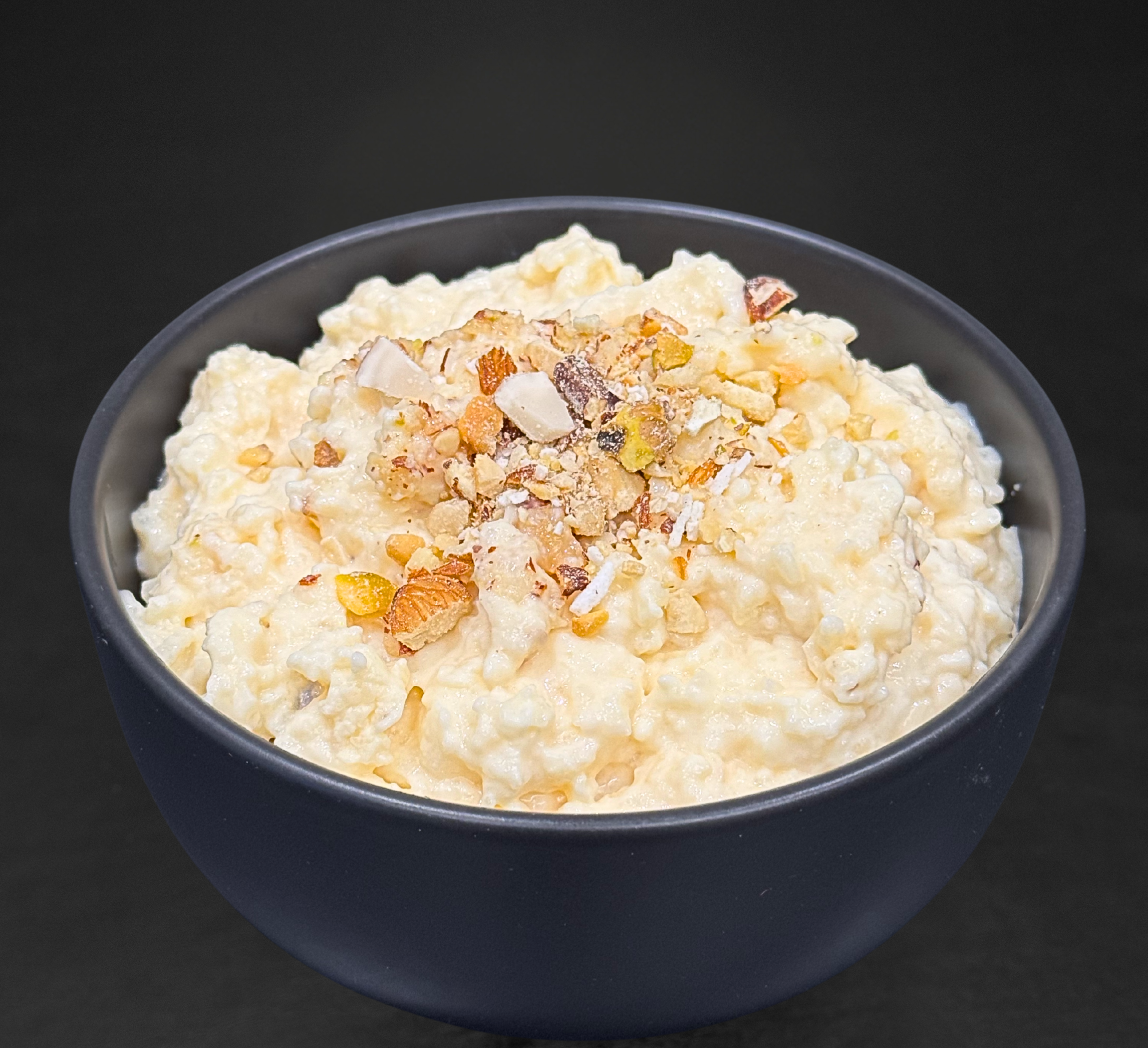 A traditional sweet and creamy rice pudding. The dish is simmered in milk and slow-cooked to perfection with a garnish of almonds and walnuts.🍚🥄