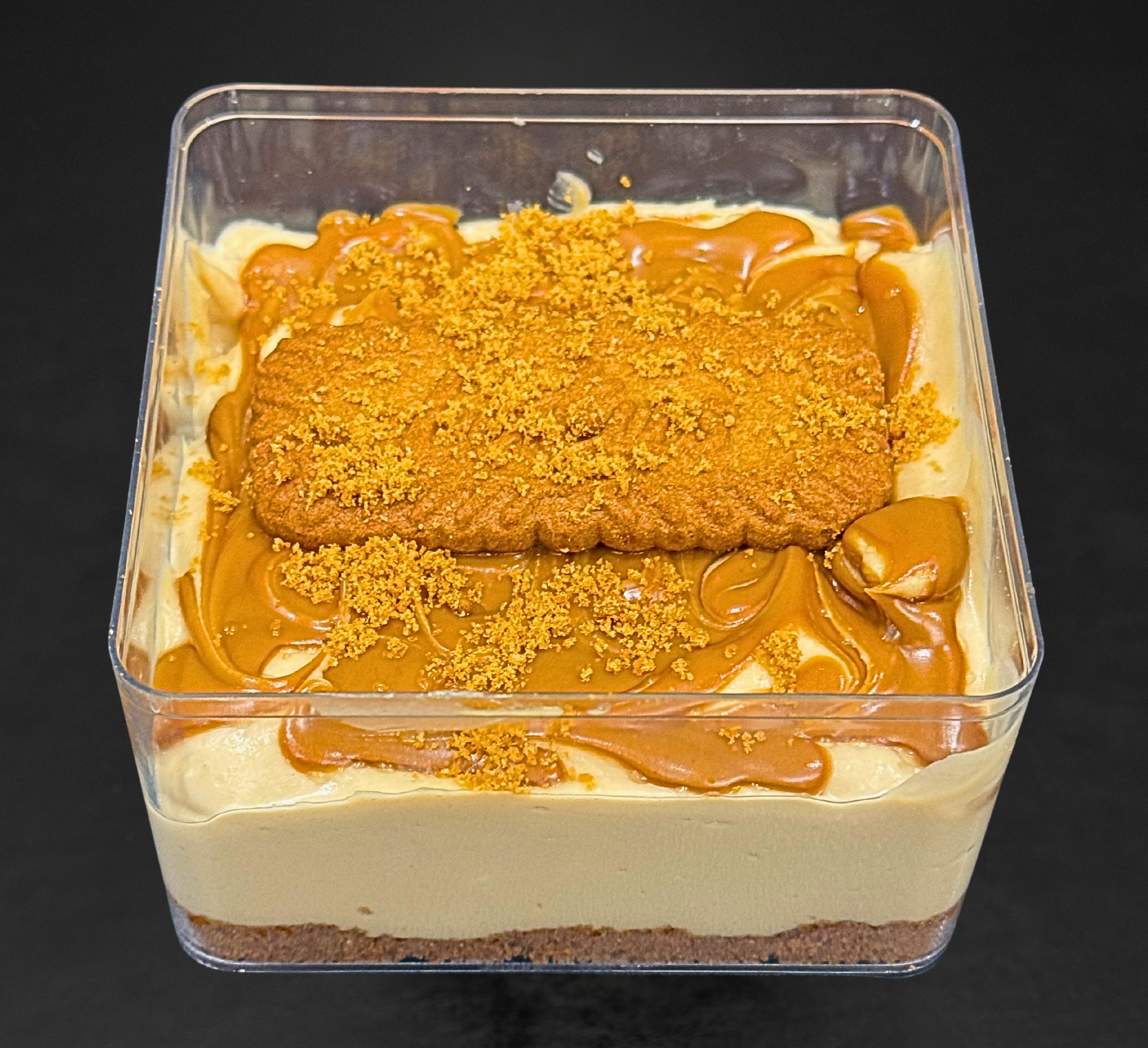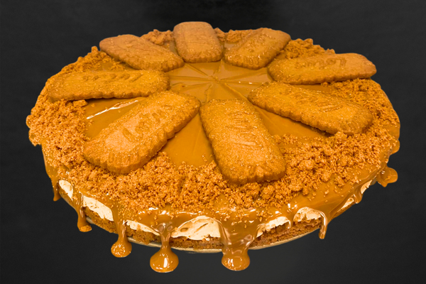 Creamy cheesecake with a lotus biscuit crust, offering a delightful blend of sweet and spiced flavors.