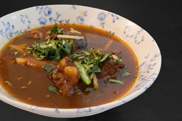 Enjoy the luscious depth of Mutton Nihari, featuring slow-cooked mutton pieces enveloped in a dense, spicy gravy that clings with every succulent bite, offering a feast for the senses.🍛🐐