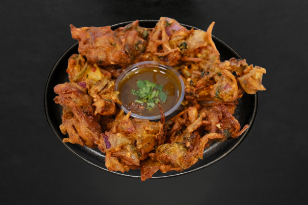 Crispy fritters made of potatoes, onions, and cabbage. Each dipped in a spiced batter and fried to golden perfection for a snack